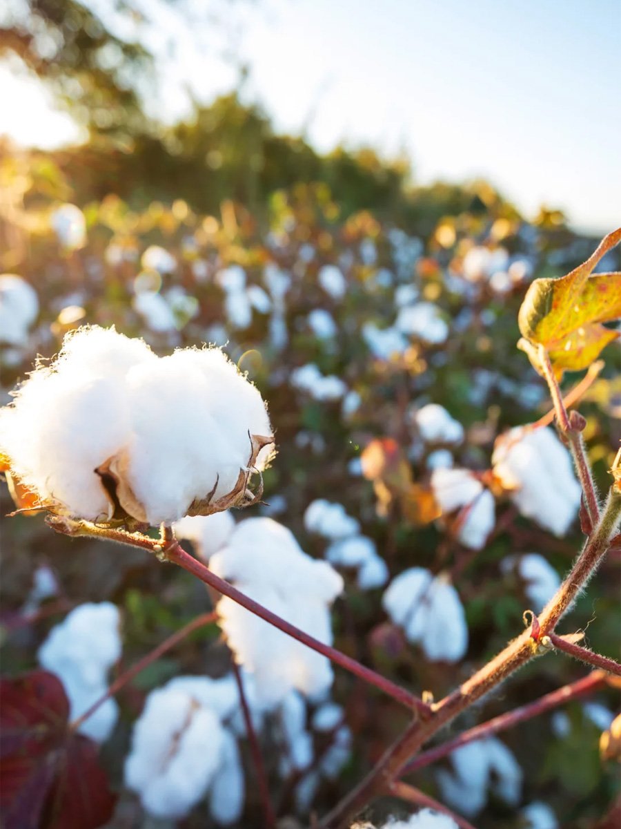 Cotton is grown in warm climates and require a long growing season. The cotton fibers are harvested by hand or machine.