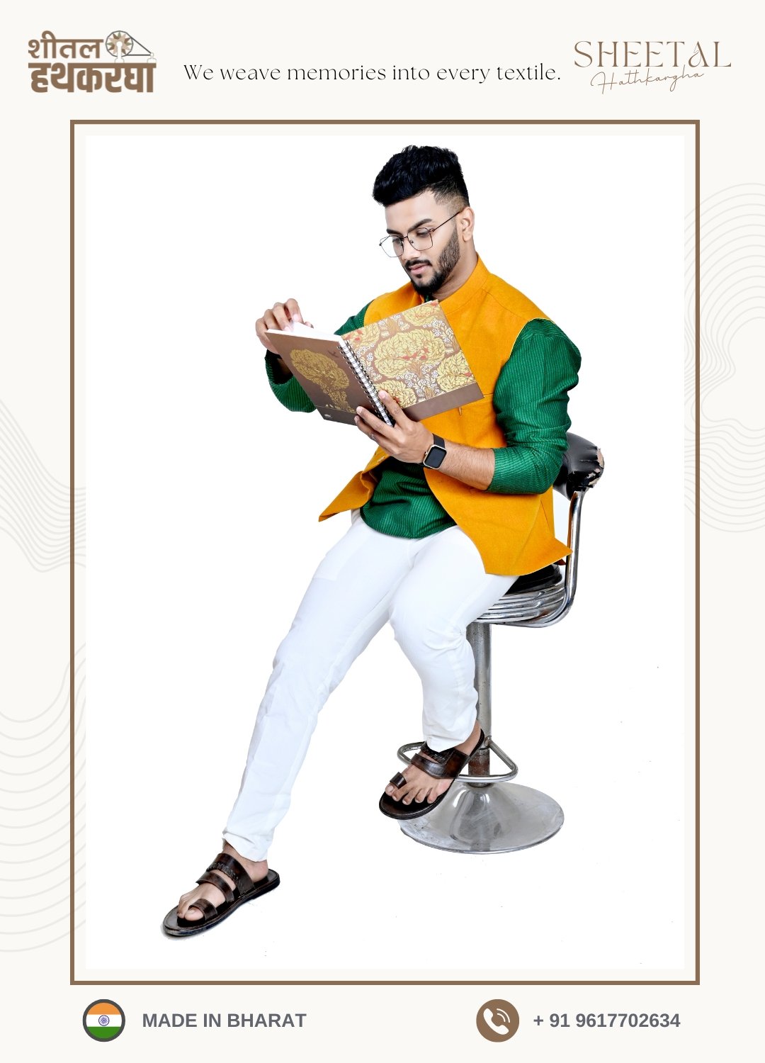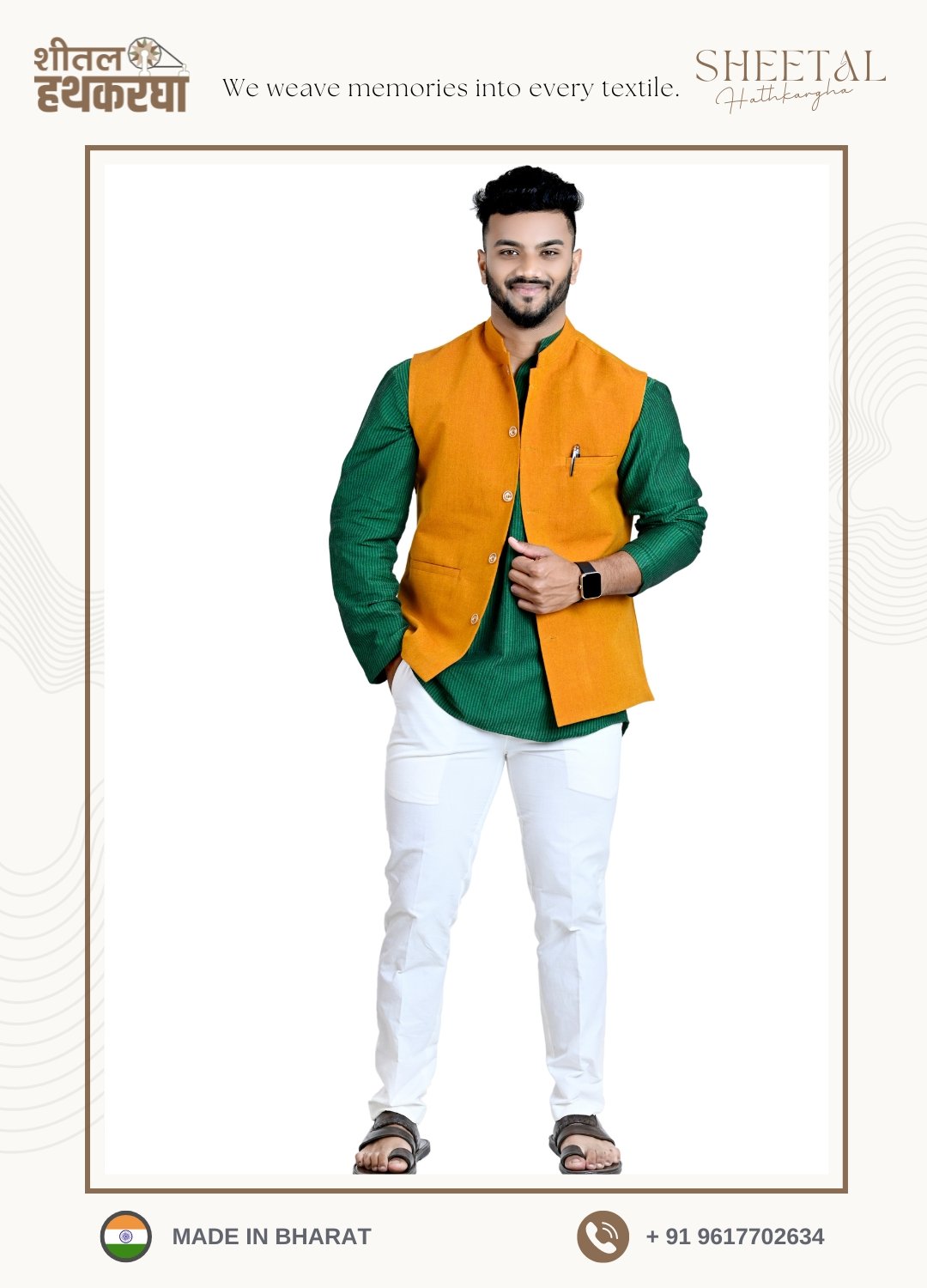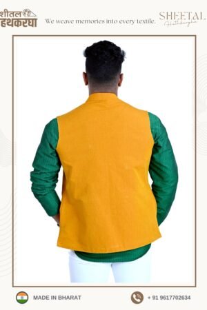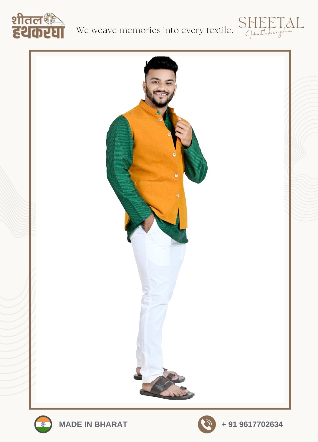 Sheetal Hathkargha Men Handwoven Tickseed Yellow Color Pure Cotton Modi Jacket