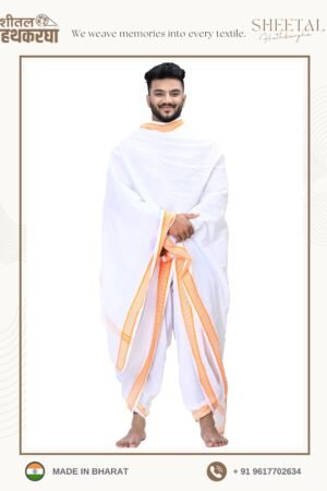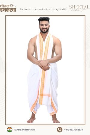 • Sheetal Hathkargha Pure Cotton Dhoti Dupatta Set For Men